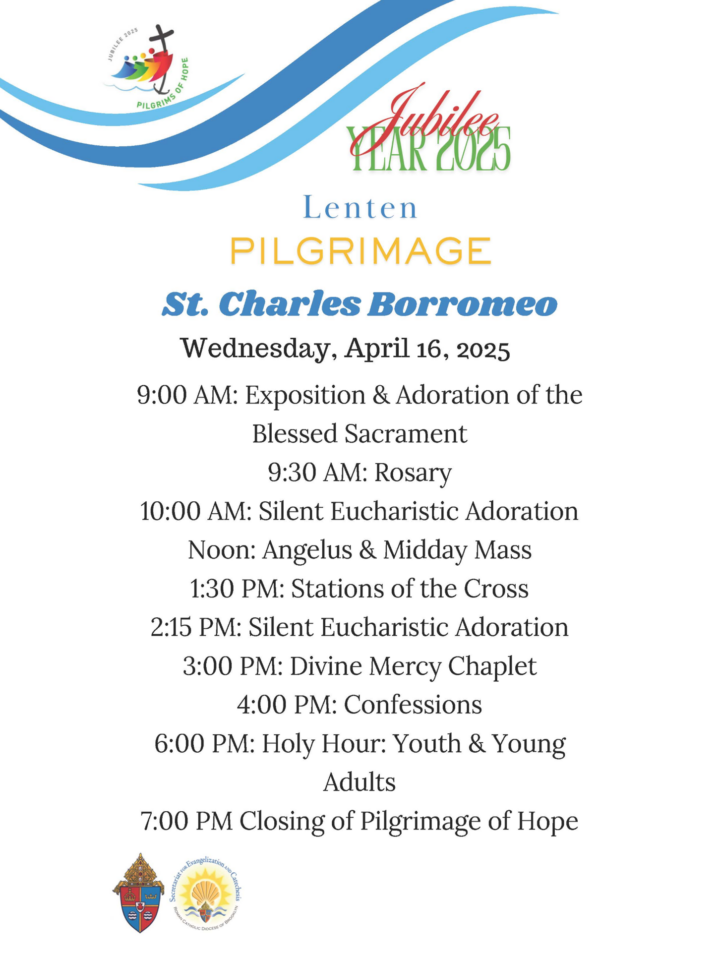 St. Charles Borromeo will be the final stop on the pilgrimage during Holy Week on Wednesday, April 16. The full schedule is above.