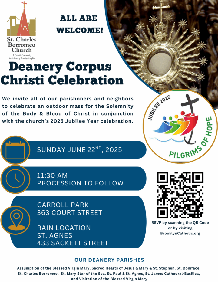 Consider increasing your financial support of the parish. You can contribute online through our parish online giving portal, stcharlesbklyn.weshareonline.org.