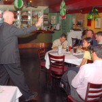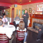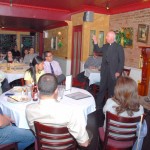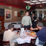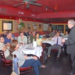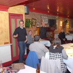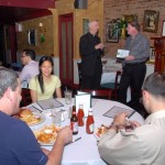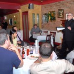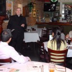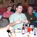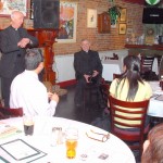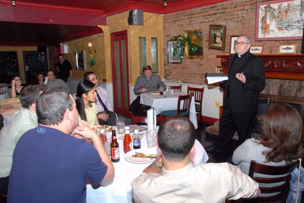 Bro. Owen Sadlier, O.S.F. (right), a philosophy professor at St. Francis College, discussed the Theology of Sport at this month’s Theology on Tap held on Tuesday 3/13 at Eamonn’s in Brooklyn Heights. Over 30 people joined our spirited discussion. Photos by Guy Noe