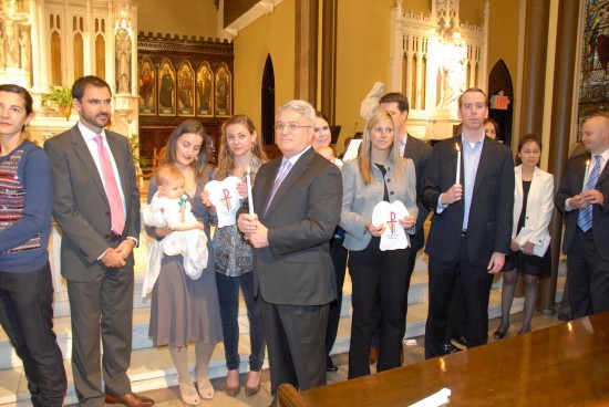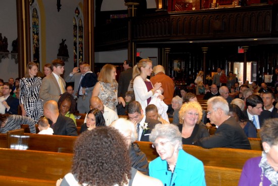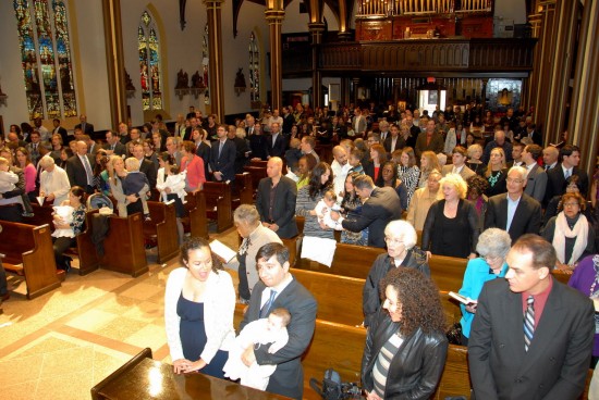 On October 28, 12 new members were welcomed into our community in Baptism. This was the largest number of baptisms ever held at St. Charles at one time: according to Fr. Ed, the previous record was 11 in the late 1800’s. Congratulations and blessings for them, their families and their new godparents. All photos by Guy Noe.