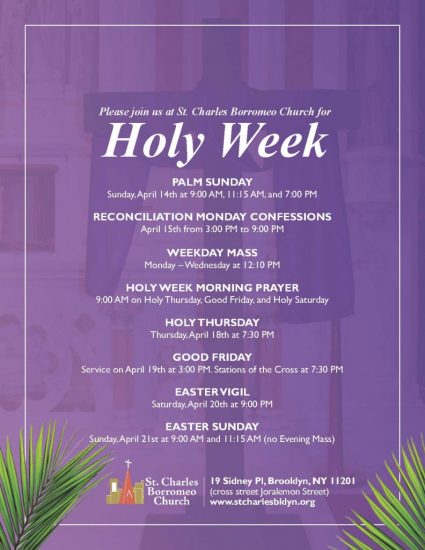 Sunday, April 21st at 9:00 AM and 11:15 AM (no Evening Mass)