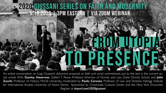 In an online conversation moderated by Prof. Paolo Carozza, renowned theologian Stanley Hauerwas, and history professor John Zucchi will revisit a classic text by Fr. Giussani from 1976, From Utopia to Presence. In this text, Fr. Giussani addressed precisely the question of how Christians should participate in social life and respond constructively to the challenges posed by social justice movements like those active today in America.”