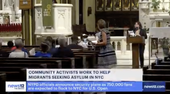 On Monday, August 29, Catholic Migration Services and Catholic Charities Brooklyn and Queens hosted information sessions at our church for migrants who had been bused from the border. Volunteers from St. Charles Borromeo helped serve food and welcome the migrants. Channel 12 News covered the event, a clip can be watched here.