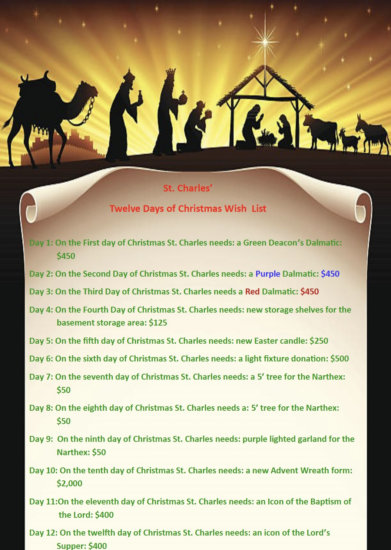 We ask for your support of our annual Christmas donation that goes to support the activities of St. Charles, and St. Charles only. You can donate online at https://stcharlesbklyn.weshareonline.org/ParishChristmasGift, via the Christmas Gift to the Parish envelope, or in your own envelope marked “Christmas Gift to the Parish”.
