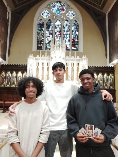 In the spirit of the Church’s call to give alms during the season of Lent, last week, our young parishioner, Vikram Rodriguez, along with his pals, Ninuola and Julien (and his Vikram’s grandmother, Jenna) volunteered their skills and efforts to post QR codes throughout the pews, to aid us faithful in tithing to the parish.